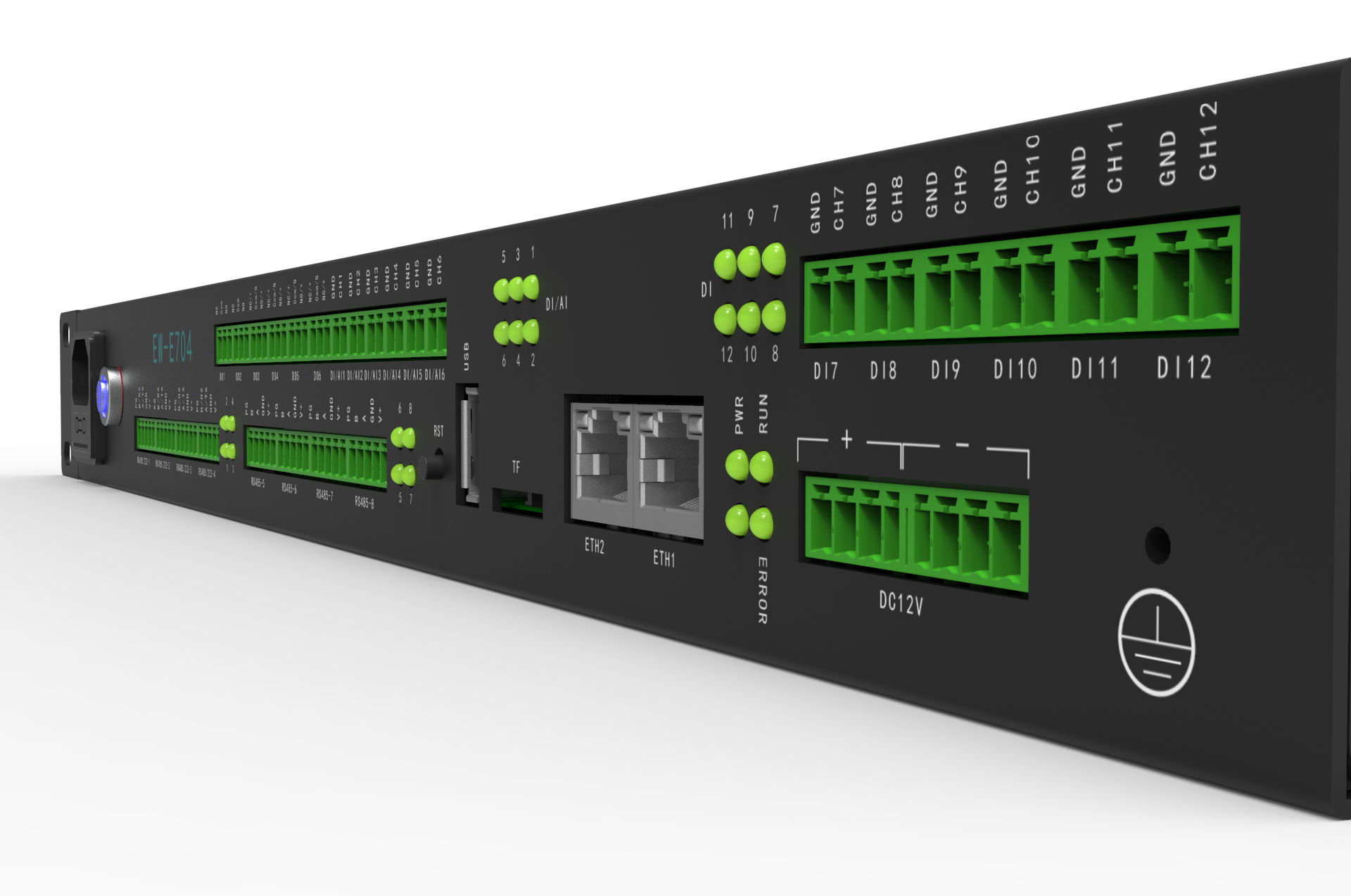 浪涌等級、電磁兼容性好,輸入、輸出接口附帶 2KA 及以上浪涌防護(hù)能力,所有接口均具有空氣放電 8kV、接觸放電 6kV ESD 防護(hù)。E704主機(jī)符合行業(yè)規(guī)范中的防雷要求。